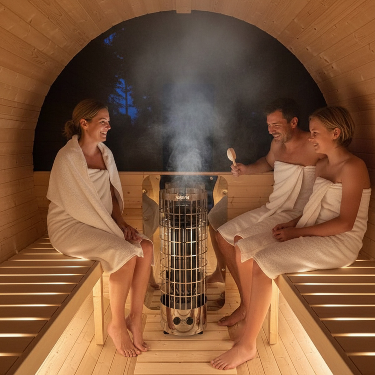 🔥 The sauna includes a Harvia electric heater — a certified European brand with clear installation and operating instructions.