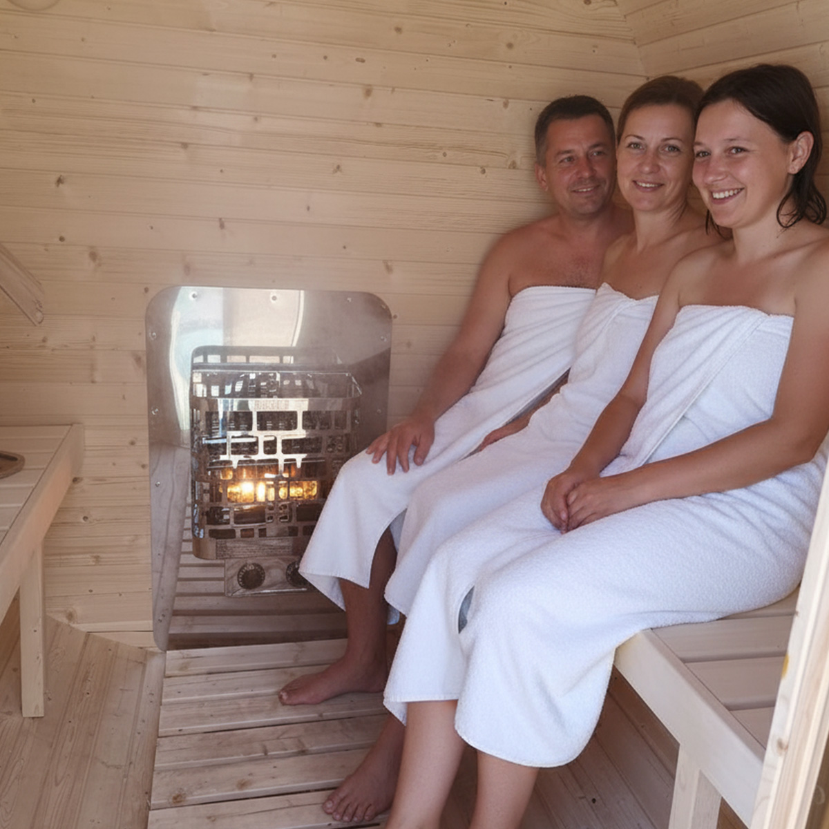 🔥 The sauna includes a Harvia electric heater — a certified European brand with clear installation and operating instructions.